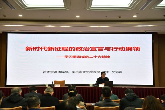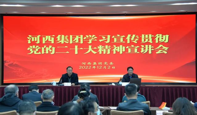 根據(jù)中央和省市委、市國(guó)資委黨委部署要求,12月2日下午,河西集團(tuán)召開(kāi)學(xué)習(xí)宣傳貫徹黨的二十大精神宣講會(huì),邀請(qǐng)市委宣講團(tuán)成員、市委黨校科研處處長(zhǎng)高信奇教授做專(zhuān)題宣講,進(jìn)一步引導(dǎo)集團(tuán)廣大黨員干部職工全面深入學(xué)習(xí)宣傳貫徹黨的二十大精神,切實(shí)把思想和行動(dòng)統(tǒng)一到黨的二十大精神上來(lái),更加深刻領(lǐng)悟“兩個(gè)確立”的決定性意義,不斷增強(qiáng)“四個(gè)意識(shí)”、堅(jiān)定“四個(gè)自信”、做到“兩個(gè)維護(hù)”。會(huì)議由集團(tuán)黨委副書(shū)記、董事繆昌根主持。集團(tuán)領(lǐng)導(dǎo)、全體中層干部及集團(tuán)下屬各公司黨務(wù)工作者參加會(huì)議。