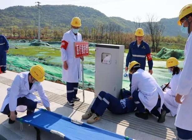 本次演練主要分為事故演練和應急處置措施培訓兩部分。首先開始的事故演練以一名電工檢修配電箱時突發(fā)觸電事故為背景。項目部接到事故匯報后,立即按既定預案啟動事故應急處置程序,各應急小組迅速到位、協(xié)調(diào)配合,分別承擔現(xiàn)場警戒、人員應急醫(yī)護救援、后勤物資保障等任務,順利完成了本次演練。在應急處置措施培訓環(huán)節(jié),項目部邀請了溧水區(qū)永陽鎮(zhèn)社區(qū)醫(yī)院醫(yī)生現(xiàn)場講解、培訓了心肺復蘇、人工呼吸等施工常見事故的緊急處理措施。全部演練結束后,南京市溧水區(qū)城鄉(xiāng)建設局質(zhì)量安全監(jiān)督站負責人對演練成果及項目部有序有效的組織能力表示了肯定。