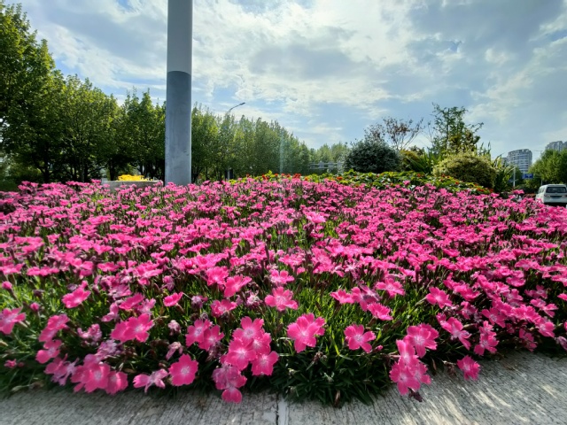 在草花品種上,除了選用一串紅、孔雀草、矮牽牛、繁星花等常規(guī)季節(jié)性、花期較長的品種外,還新增了毛地黃、垂吊牽牛、金葉雪茄花、超級海棠、歐石竹、常夏石竹、藿香薊等市民喜歡且生命力旺盛的草花品種。多顏色、多品種的搭配,達(dá)到了花色靚麗多彩、層次錯落有致、春意盎然的景觀效果,提升了河西中部地區(qū)道路景觀品質(zhì),扮靚了河西新城。