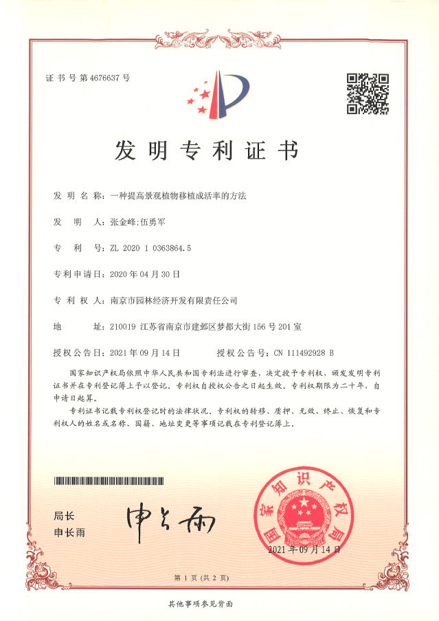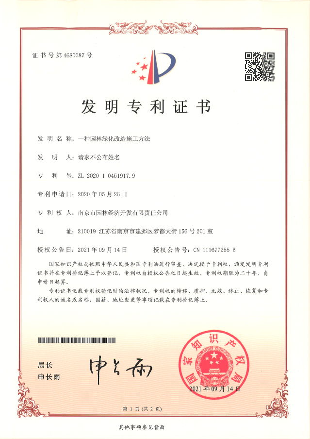 近日,河西集團南京市園林經(jīng)濟開發(fā)有限責任公司喜獲兩項國家發(fā)明專利授權(quán)。