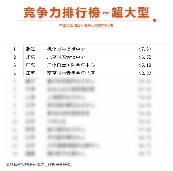 本屆榜單按照酒店的規(guī)模體量分為超大型、大型、中型、小型四個類別,從上一年度承接會議數(shù)量和規(guī)模、會議室容量和數(shù)量、客房總數(shù)、渠道客評、經(jīng)營數(shù)據(jù)等多方面進(jìn)行綜合評價,經(jīng)數(shù)據(jù)調(diào)研、專家評審等多個環(huán)節(jié)細(xì)致評估,得到了相對客觀準(zhǔn)確的評選結(jié)果。國青酒店憑借自身場地優(yōu)勢、對會議客戶市場的探索及挖掘、專業(yè)的會議接待服務(wù),贏得了專家評委及企業(yè)買家的認(rèn)可,在榜單中以總分92.83的好成績位列全國第四。