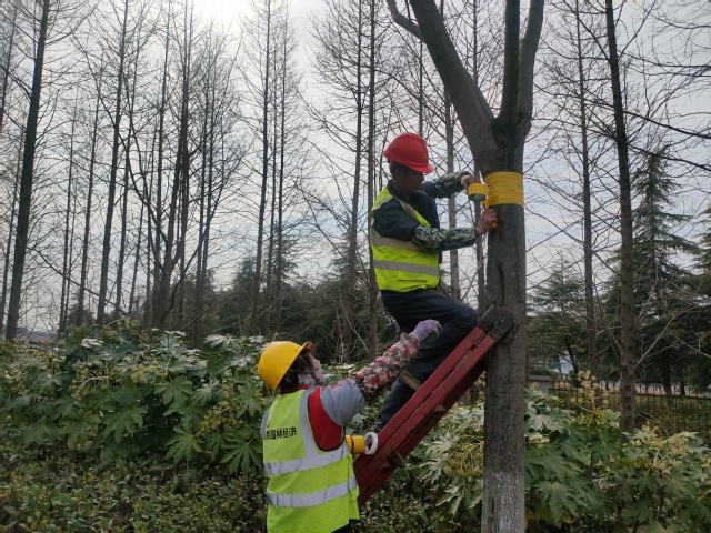 這項舉措不僅可以大大降低綠化養(yǎng)護成本,并且還不存在農(nóng)藥殘留,不污染環(huán)境。目前公司綠化養(yǎng)護人員已經(jīng)對嗇園路83株欒樹、蒼山路的20余株紫葉李進行了膠帶黏蟲實驗,后期公司將持續(xù)進行觀察,來檢驗其防治效果,為后期開展病蟲害防治提供寶貴的科學依據(jù)。