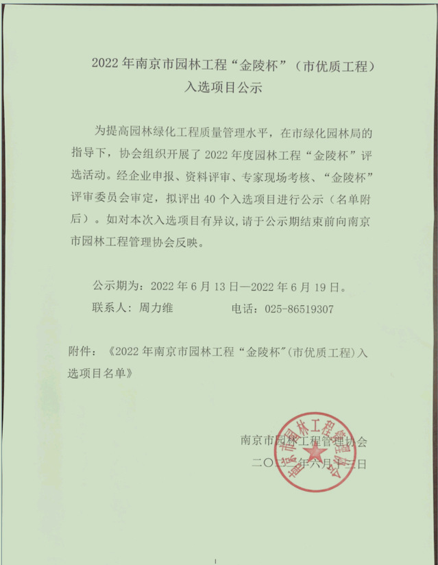 近日,由河西集團新城公司溧水項目部代建的溧水區(qū)秦淮大道改造景觀提升工程順利通過南京市園林工程管理協(xié)會組織的”金陵“”評審,成功入選2022年南京市園林工程“金陵杯”(市優(yōu)質工程)項目名單。