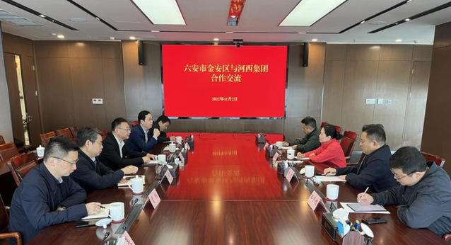 2022年11月2日,六安市金安區(qū)委副書記、區(qū)長(zhǎng)黃媛媛,金安經(jīng)濟(jì)開發(fā)區(qū)管委會(huì)書記、主任程旭,金安區(qū)政協(xié)副主席方明,金安經(jīng)濟(jì)開發(fā)區(qū)投資促進(jìn)局局長(zhǎng)王懷槐一行蒞臨河西集團(tuán)考察交流。河西集團(tuán)總經(jīng)理、黨委副書記、董事何流,副總經(jīng)理、黨委委員呂道峰,河西集團(tuán)園林經(jīng)濟(jì)公司董事長(zhǎng)趙康兵,南京河西私募基金管理有限公司執(zhí)行董事曹鵬接待并進(jìn)行座談。