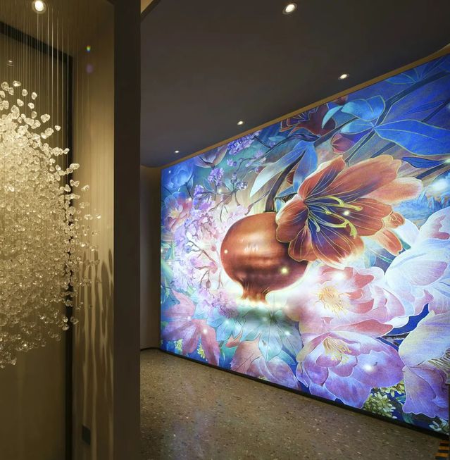 “人間歡喜事,石榴成熟時(shí)”,藝術(shù)生活館中一幅瑰麗絢爛的手繪花神圖渲染出主題氛圍,鮮花簇?fù)眍w粒飽滿(mǎn)石榴的畫(huà)幅,姹紫嫣紅中,將奧體公司開(kāi)發(fā)的奧體新城各小區(qū)名稱(chēng)中的植物元素有機(jī)組合在一起,觀眾置身其中,仿佛能聞到花的芳香、看到石榴籽的晶瑩剔透。畫(huà)面寓意著花開(kāi)興隆、興旺昌盛,祝福幸福美好生活紅紅火火,也體現(xiàn)了河西集團(tuán)“開(kāi)發(fā)幸福、運(yùn)營(yíng)美好”的經(jīng)營(yíng)理念。整幅花神圖由特邀手繪師親繪而成,十分珍貴。