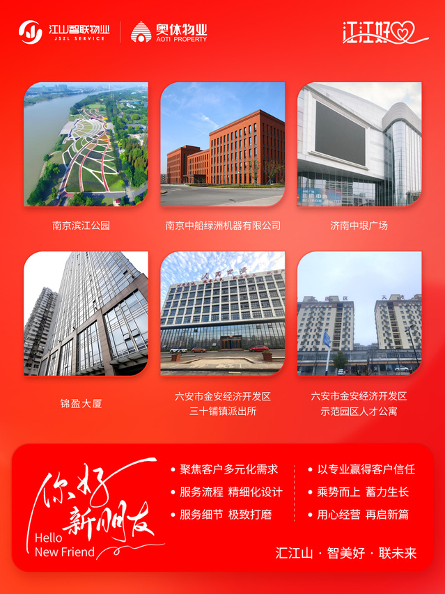 聚焦客戶多元化需求,用專業(yè)贏得客戶信任。江山智聯(lián)物業(yè)將持續(xù)精細(xì)化設(shè)計服務(wù)流程、極致打磨服務(wù)細(xì)節(jié),乘勢向上、用心經(jīng)營,新年再啟新篇。